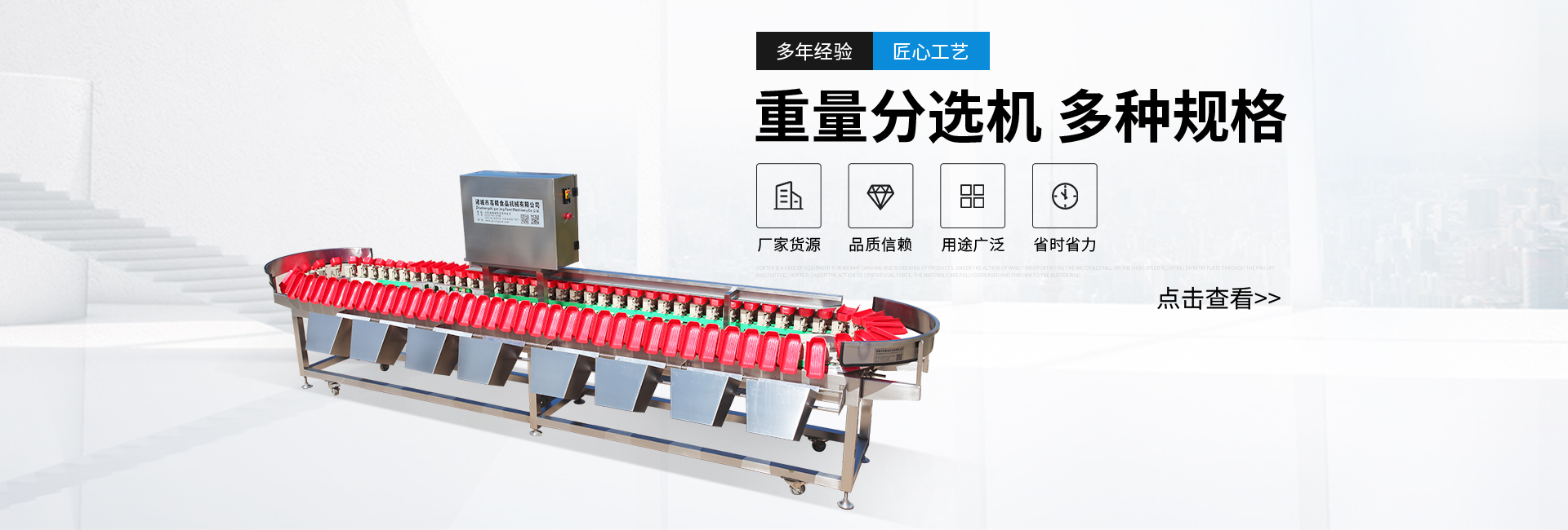 重量分選機的應用范圍非常廣泛,比如食品行業的大小分類、質量檢測行業。目前重量分選機分為托盤式和皮帶式兩種。托盤式分選機在屠宰肉食水產行業應用廣泛,且稱重精度高,誤差±0.5g。高精重量…高精重量分選機能分選桑葚嗎